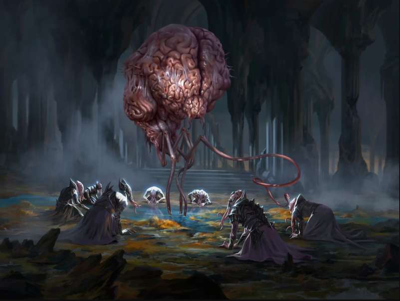 Once a colony is secure, it focuses on the Grand Design — the mind flayers’ plan to rebuild their lost empire. The illithids know that reclaiming their rightful place in the world is possible only after the githzerai and githyanki have been eliminated and the remaining humanoids have been turned into docile slaves. To that end, each colony conducts research into the nature of the world and the creatures that inhabit it. The mind flayers examine all facets of reality, seeking any knowledge that could give them the edge they need to confront, defeat, and subjugate their enemies.