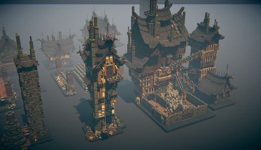 - Generic houses, repeating House block tiles with chimneys, furnaces