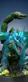 Moonstone dragons are graceful and elegant creatures with opalescent scales and ruffs of emerald-green fur running down their chins, chests, backs, and tails. One horn arcs from the back of a moonstone dragon’s skull and another at the tip of the nose; the two horns together form a shape that’s reminiscent of a slender crescent moon.